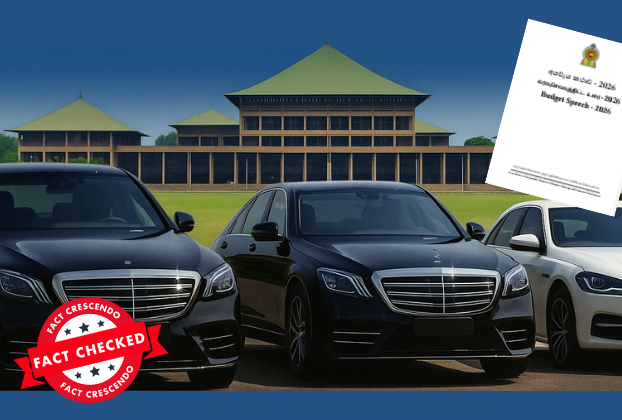 දිනපතා සත්ය කරුණු දැන ගැනීමට අපගේ WhatsApp චැනලයට මෙතනින් එකතුවන්න. 2026 වසරට බලපැවැත්වෙන අයවැය යෝජනාවේදී පාර්ලිමේන්තු මන්ත්රීවරුන්ට වාහන ලබා දීමට මිලියට 12,500ක් වෙන් කර ඇති බව දැක්වෙන සමාජ මාධ්ය ඔස්සේ මෙන් ම ඇතැම් මාධ්ය ද වාර්තා කර තිබුණා. මේ හේතුවෙන් මෙහි නිර්වද්යතාව සොයා බැලීමට අප පියවර ගනු ලැබුවා. සමාජ මාධ්ය සටහන් (Social Media Posts) : […]