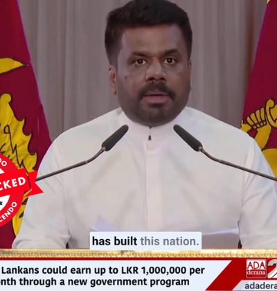 දිනපතා සත්ය කරුණු දැන ගැනීමට අපගේ WhatsApp චැනලයටමෙතනින් එකතුවන්න. ඉල්ලීම් කිහිපයක් මුල් කරගනිමින් ක්රියාත්මක කරන ලද වැඩ වර්ජන හේතුවෙන් රජයේ වෛද්ය නිල්ධාරීන්ගේ සංගමය සම්බන්ධයෙන් මෑත කාලීනව සමාජය තුළ වැඩි වශයෙන් කතා බහට ලක්වනවා. මේ අතර අසත්ය සහ නොමග යවන සුළු තොරතුරුද බහුලව සංසරණය වන ආකාරය නිරීක්ෂණය කළ හැකියි. රජයේ වෛද්ය නිලධාරීන්ගේ සංගමයේ ලේකම් වෛද්ය ප්රභාත් […]