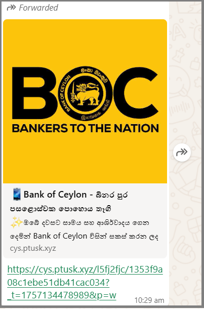 වර්තමානයේ ශ්රී ලංකාවේ වැඩිම ගනුදෙනුකරුවන් පිරිසක් සිටින බැංකුව වන ලංකා බැංකුව ලංකාවේ විශාලතම සහ පැරණිතම රාජ්ය බැංකුවයි. ලංකා බැංකුව විසින් බිනර පෝය නිමිත්තෙන් තෑගි දෙන බවටත්, ඒ සඳහා යම් සබැඳියක් ඔස්සේ තොරතුරු ඇතුළත් කළ යුතු බවටත් WhatsApp සහ වෙනත් සමාජ මාධ්ය ඔස්සේ සංසරණය වූ තොරතුරක් පිළිබඳව අප විසින් විමර්ශනයක් සිදුකරන ලදී.