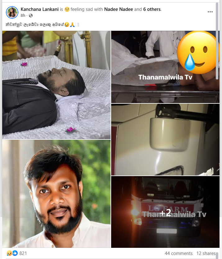 වයිරල් වූ ඡායාරූපයේ දැක්වෙන්නේ රිය අනතුරකින් ජීවිතක්ෂයට පත්වූ වෙනත් පුද්ගලයෙක්
