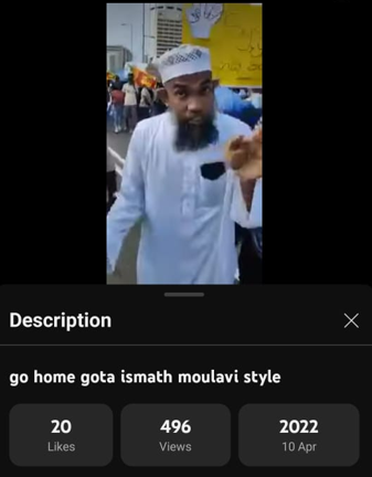 එහිදී ‘go home gota ismath moulavi style’ එනම් ‘ගෝඨා ගෝ හෝම්’ යනුවෙන් ඉස්මත් මවුලවි පවසන අයුරු ලෙස දක්වමින්, මේ දිනවල නියෝජ්ය අමාත්යවරයා ලෙස වයිරල් වන වීඩියෝව, මීට වසර තුනකට පෙර 2022 අප්රේල් මස, අරගල සමයේ දී පළවී තිබුනේ මෙලෙසින්.
