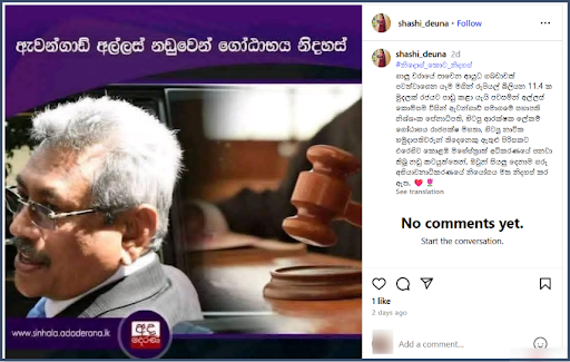 Title:ගෝඨාභය සහ සේනාධිපති ඇවන්ගාඩ් නඩුවෙන් නිදොස් කොට නිදහස ලැබූ කාලය පිළිබඳ නොමග යන සටහන් පෙළක්!