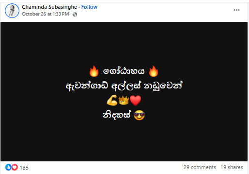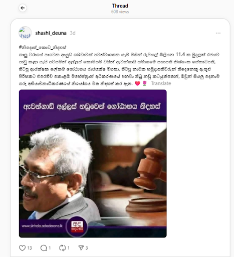 ප්‍රධාන මාධ්‍ය ධාරාවක මෙම පුවත දක්වා වී ඇති බවට දක්වමින් මෙම තේමාවෙන් පළ වූ සටහන් Instagram සහ Threads ඔස්සේ ද, පළ වී තිබුණේ මේ අයුරින්.