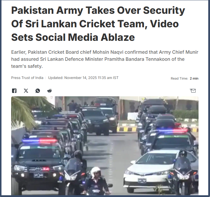 පාකිස්ථානය සහ ශ්රී ලංකාව අතර ඉතිරි එක්දින තරගයට ශ්රී ලංකා ක්රිකට් කණ්ඩායමට ලබා දී ඇති උපරිම ආරක්ෂාව ලෙස සඳහන් කරමින් වීඩියෝවක් සමාජ මාධ්ය ඔස්සේ සංසරණය වූයේ මෙලෙසින්.
