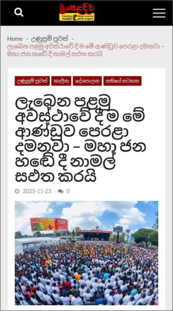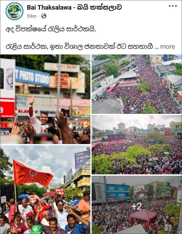 සමාජ මාධ්‍ය තුළ හුවමාරු වන මෙම ජායාරූප සත්‍ය ලෙසම පසුගිය 21 වන දා පැවැත්වුණු විපක්ෂයේ රැලියේදී ලබාගත් ජායාරූප ද යන්න තහවුරු කර ගැනීම සඳහා අප විසින් කරුණු පරීක්ෂාවක් සිදු කළා.