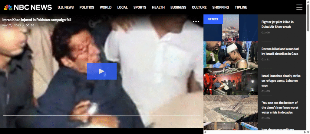 මින් එක් රූපයක් 2013 වසරේදී, ඉම්රාන් ඛාන් මැතිවරණ රැලියක් අතරතුර ෆෝක්ලිෆ්ට් වේදිකාවෙන් වැටුණු අවස්ථාවේ ලබා ගත් ඡායාරූපයකි.