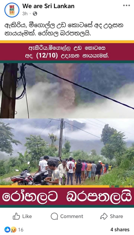 රට තුළ උද්ගත වී ඇති ආපදා තත්ත්වය සමඟ ඇතිවූ ආපදා තත්වයන් ඇතැම් අවස්ථාවල දී උද්දීපනය කරමින් නොමග යවන සුළු සහ අසත්ය තොරතුරු සමාජ මාධ්ය තුළ හුවමාරු වනවා. එවැනි සටහන් පෙලක් සම්බන්ධයෙන් අප විසින් සිදු කළ කරුණු පරීක්ෂා කිරීමක් පහතින්.