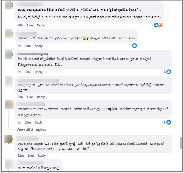රජය විසින් නිකුත් කරන ලද නිවේදනයක් ලෙස ප්රකාශ කරමින් කරමින් පළ කරන ලද මෙම සමාජ මාධ්ය සටහනේ දැක්වෙන්නේ, ග්රාම නිලධාරීවරුන්ගේ ක්රියා හේතුවෙන් පීඩාවට පත්වන මහජනතාවට ඒ පිළිබඳ දැනුම් දීම සඳහා නිල දුරකථන අංක රජය විසින් නිවේදනය කර ඇති බවයි. තව ද මහජනතාවගේ ප්රයෝජනය සඳහා මෙම තොරතුරු බෙදා හරින ලෙස ද එහි සඳහන් වේ.