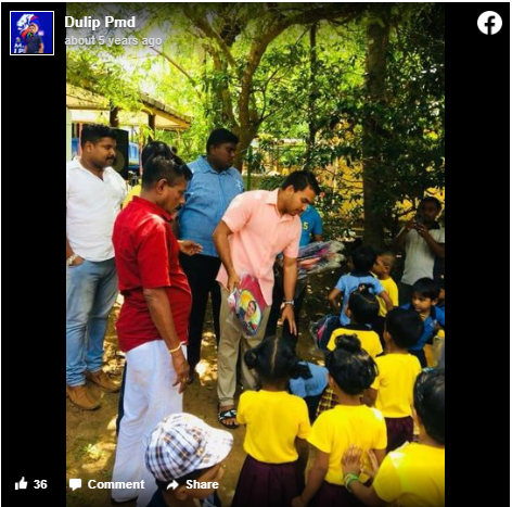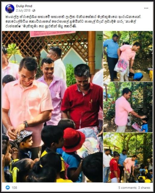 2018 දෙසැම්බර් මස ඉහත ඡායාරූපය ෆේස්බුක්හි පළ කර තිබු අවස්ථා පහතින්.