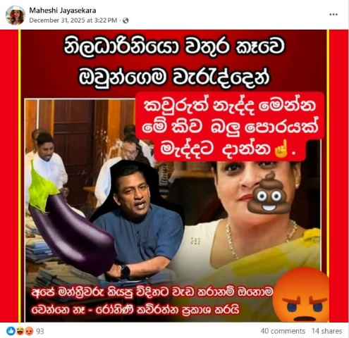 ඒ අනුව රෝහිණී කවිරත්න මන්ත්රීවරිය සිදු කර ඇති බව කියමින් සමාජ මාධ්ය ඔස්සේ සංසරණය වන සටහනේ නිර්වද්යතාව විමසා බැලීමට අප මෙලෙස පියවර ගත්තා.