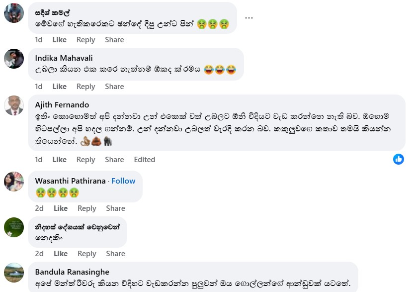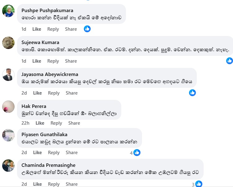 මන්ත්රීවරිය ඉහත සඳහන් ආකාරයේ ප්රකාශයක් සිදු කර ඇති බව කියමින් ෆේස්බුක් ඔස්සේ තවදුරටත් මෙම සටහන හුවමාරු වී තිබුණේ මේ අකාරයෙනි.