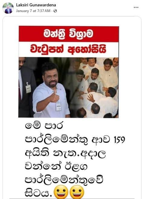 රට තුළ දේශපාලනික වශයෙන් වැදගත් වන කාලීන සිදුවීම් බොහෝ අවස්ථාවල සමාජ මාධ්යයේ ද ප්රධාන මාතෘකා බවට පත්වේ. බලයට පත්වීමට පෙර ජාතික ජන බලවේගයේ ප්රධානතම මැතිවරණ පොරොන්දුවක් වූ පාර්ලිමේන්තු මන්ත්රී විශ්රාම වැටුප අහෝසි කිරීමේ යෝජනාවට අදාළව සමාජ මාධ්ය ඔස්සේ මේ දිනවල සංසරණය වන සටහනක් පිළිබඳව අප සිදු කළ කරුණු පරීක්ෂාවක් මේ.