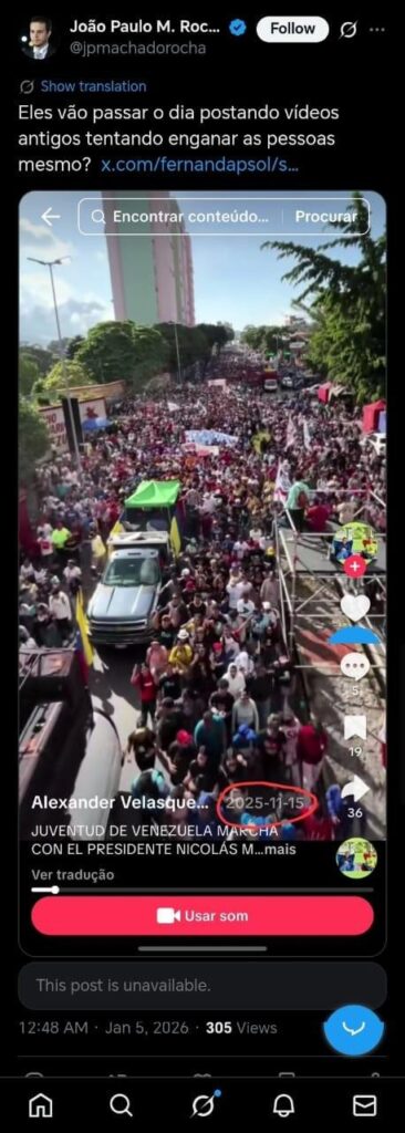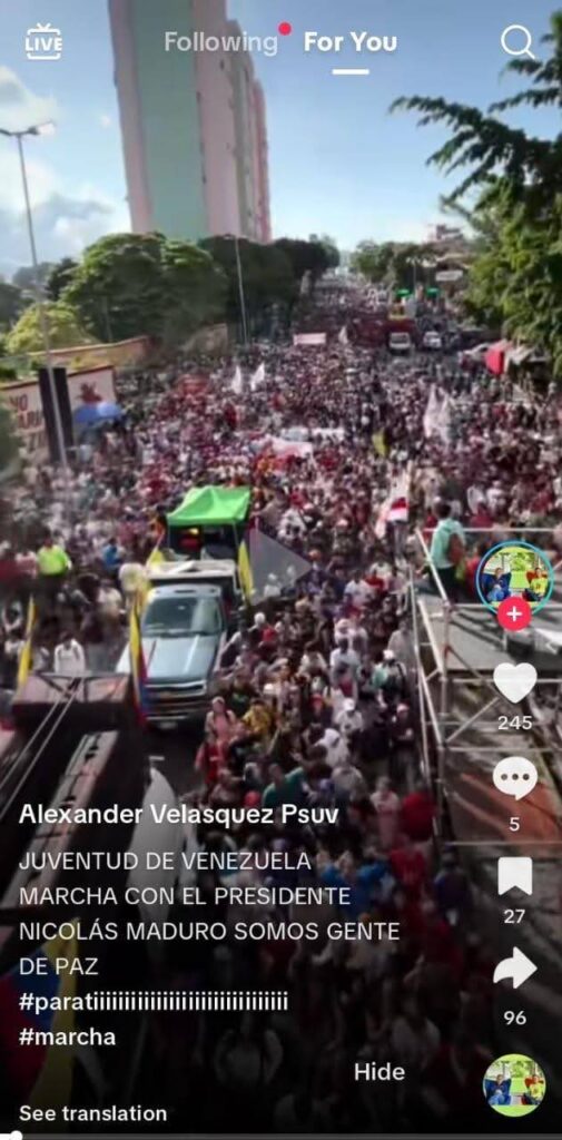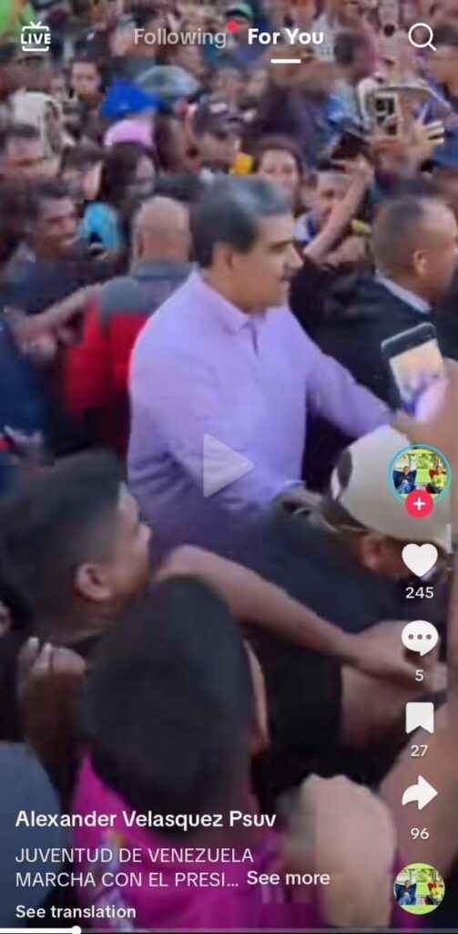 2025.11.15 වන දින පල කර ඇති මෙම වීඩියෝව නිකොලස් මදුරෝ සමඟ පැවති වෙනිසියුලාවේ තරුණයන්ගේ පාගමනක වීඩියෝවක් ලෙස ශීර්ෂ පාඨයේ සටහන් ව තිබුණා. මෙම වීඩියෝවේ එක් දර්ශනයක නිකොලස් මදුරෝව ද දැක ගත හැකි වනවා.