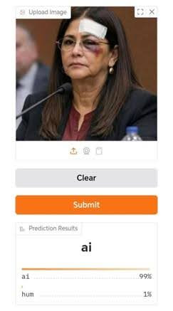 එසේම සමාජ මාධ්‍ය ඔස්සේ හුවමාරු වන අස්වාභාවික සම ඇතුළු වෙනත් කෘත්‍රිම අස්වාභාවික කරුණු ද සැලකිල්ලට ගනිමින් අප විසින් අදාළ ඡායාරූපය AI (කෘත්‍රිම බුද්ධි) හඳුනා ගැනීමේ මෙවලම් වෙත යොමු කරනු ලැබුවා. එහිදී පැහැදිලි වූයේ අදාළ ඡායාරූපය කෘතිම බුද්ධිය මගින් නිර්මාණය කළ බවට ඉහළ සම්භාවිතාවයක් ඇති බවයි.