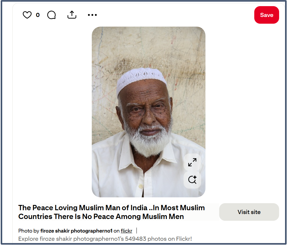 ජනාධිපති අනුර කුමාර දිසානායක මහතාගේ පියා බව කියමින් ෆේස්බුක් සටහන්වල දැක්වෙන පුද්ගලයා කවුරුන් ද යන්න තහවුරු කර දැනගැනීම සඳහා අප එම ඡායාරූපය Google Reverse Image සෙවුමක් ඔස්සේ පරීක්ෂා කිරීමට කටයුතු කළා. එහිදී අදාළ පුද්ගලයා ඉන්දීය මුස්ලිම් ජාතිකයෙකු බව දක්වමින් මීට වසර 12කට පෙර Flickr නම් ඡායාරූප උඩුගත කළ හැකි වෙබ් අඩවියේ පළකර, එය pinterest හි මෙලෙස සඳහන්ව තිබු බවයි.