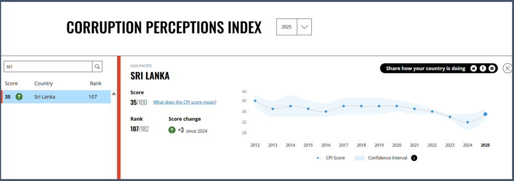 Transparency International ආයතනය විසින් 2025 වසරේ දූෂණ සංජානන දර්ශකය පිළිබඳ අදහස් දක්වා තිබුණේ මෙලෙසින්.