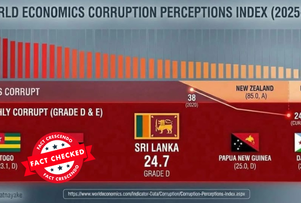 World Economics ආයතනය විසින් මෑතක දී පලකරන ලද අදාල දූෂණ සංජානන වාර්තාව පදනම් කරගනිමින්, දූෂණයට එරෙහිව දැඩි ප්රතිපත්තියක් ඇති බව දක්වමින් බලයට පැමිණි රජයක් යටතේ ද 2025 දූෂණ දර්ශකයට (Corruption Perceptions Index) අනුව ශ්රී ලංකාව ලබාගෙන ඇත්තේ ලකුණු 24.7 ක් වැනි ඉතාම අඩු අගයක් බව හඟවමින් සමාජ මාධ්ය පුරා කතාබහක් ඇති වී තිබුණා. ඒ සම්බන්ධයෙන් අප විසින් සිදු කළ කරුණු පරීක්ෂාවක් මේ.