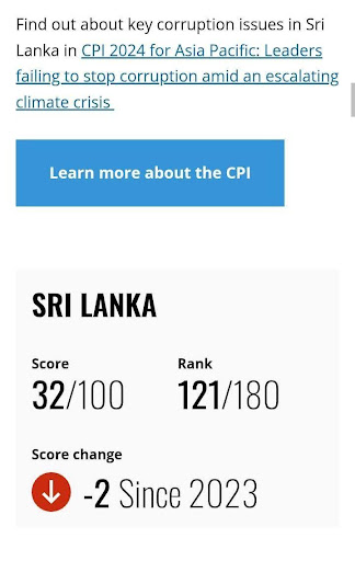 මේ සම්බන්ධයෙන් අප Transparency International Sri Lanka ආයතනයේ උපායමාර්ගික සන්නිවේදන සහ සන්නාම කළමණාකරු කසුන් සංකල්ප මහතාගෙන් විමසීමක් කළා. එහිදී ඔහු සඳහන් කළේ 2025 වර්ෂයට අදාළ ට්රාන්ස්පේරන්සි ඉන්ටනැෂනල්හි CPI වාර්තාව (Corruption perception Indicator) තවමත් නිකුත් වී නොමැති බවයි.