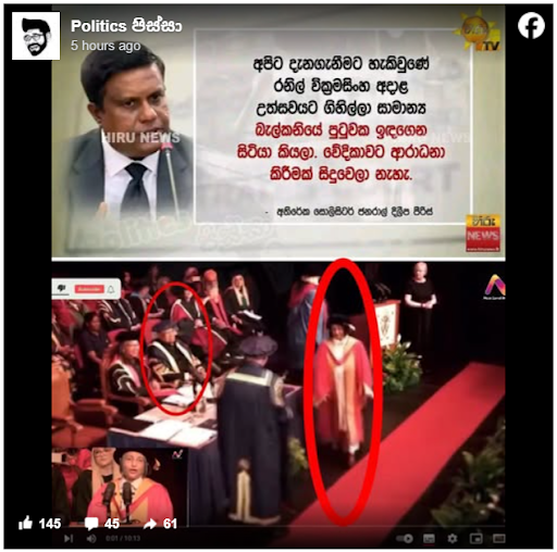 Title:උපාධි ප්රදානෝත්සවය අතරතුර රනිල් වික්රමසිංහ වාඩිවී සිටියේ ඉදිරිපෙළ අසුනක ද?