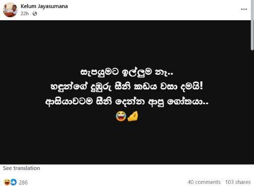 දුඹුරු සීනි අලෙවිසැල වසා දමා ඇති බව කියමින් තවදුරටත් ෆේස්බුක් ඔස්සේ විවිධ සටහන් හුවමාරු වී තිබුණේ මෙලෙසයි.
