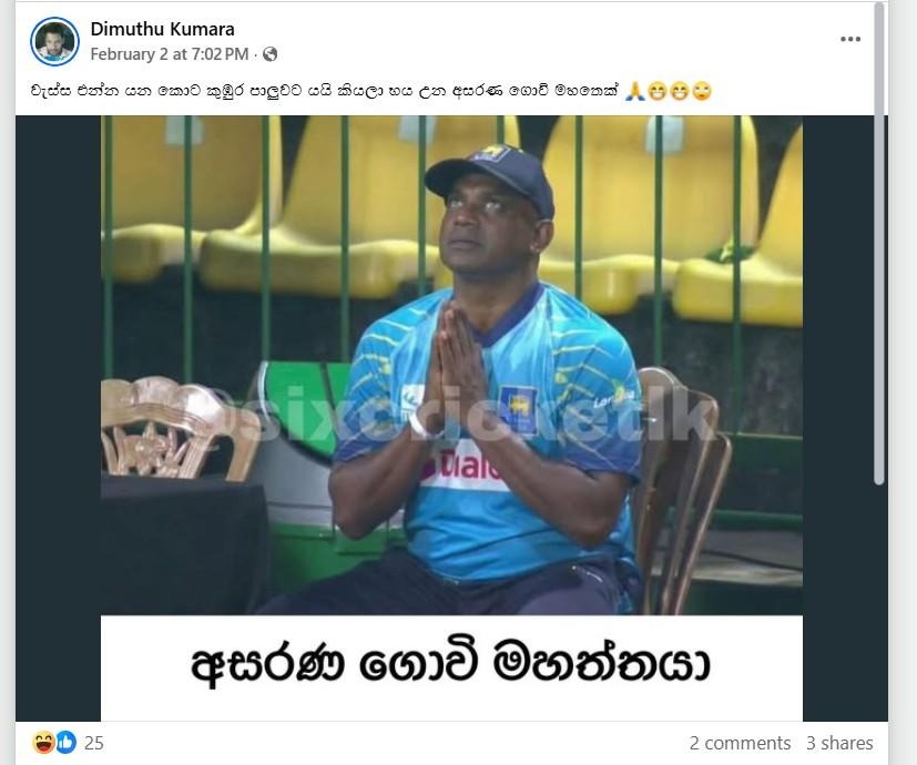 ශ්රී ලංකා කණ්ඩායම T20 ලෝක කුසලාන තරගාවලියේදී සුපිරි 8 දෙනොගේ වටයට සුදුසුකම් ලබා සිටිය ද ඊට පෙර එංගලන්තයට එරෙහිව පැවැති තරගාවලියේදී T20 තරග 3 ම පරාජය වීම හමුවේ ක්රීඩාලෝලීන්ගෙන් ක්රීඩකයින් ඇතුළු පාලනාධිකාරියට සමාජ මාධ්ය ජාලා ඔස්සේ ද යම් ආකාරයේ අප්රසාදයක් එල්ලවන අයුරු දැකගත හැකි වුණා. මේ එලෙස ශ්රී ලංකා ක්රිකට් කණ්ඩායමේ ප්රධාන පුහුණුකරු සනත් ජයසූරිය සම්බන්ධව සංසරණය වූ සටහන් පෙළක් පිළිබඳව අප සිදු කළ කරුණු පරීක්ෂාවක්.