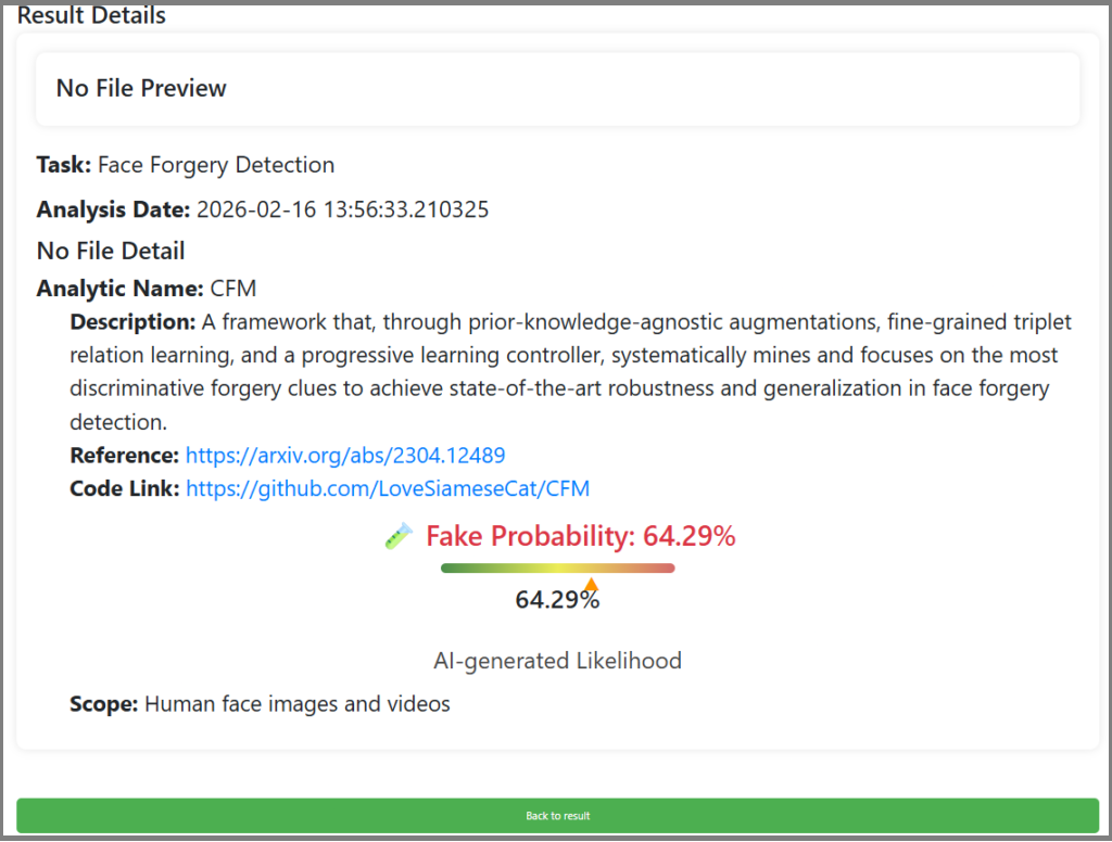ඒ අනුව මෙම ඡායාරූපය කෘත්රිම බුද්ධිය භාවිත කරමින් සකසන ලද්දක් බවට වන අනුමානය මත පිහිටා අප අදාළ ඡයාරූපය AI පරීක්ෂක මෙවලමක් වෙත යොමු කර පරීක්ෂා කිරීමට පියවර ගත්තා. එහිදී සමාජ මාධ්යයේ සංසරණය වන ඡායාරූපය කෘත්රිම බුද්ධිය භාවිතයෙන් සංස්කරණය කරන ලද්දක් බව තහවුරු විය.