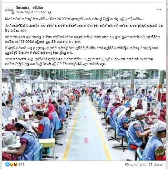 Read more : MAS ආයතනය මිහින්තලයේ ප්‍රදේශයේ කර්මාන්තශාලා දෙකක් ස්ථිරව වසා දැමීමේ සුදානමක් නැහැ!මිනුවන්ගොඩ Brandix කර්මාන්තශාලාව වසා දැමීමේ සුදානමකුත් නැහැ !!
