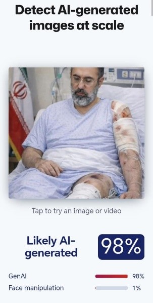 අපගේ කරුණු පරීක්ෂාවෙන් පෙන්වා දෙන්නේ ඉරානයේ නව උත්තරීතර නායක මොජ්තාබා අල් කමේනි තුවාල ලබා ඇති බවට දක්වමින් හුවමාරු වන ඡායාරූපය කෘත්රිම බුද්ධිය ඔස්සේ නිර්මාණය කරන ලද්දක් බවයි. මොජ්තාබා අල් කමේනි තුවාල ලබා ඇත්තේ ඔහු උත්තරීතර නායකයා ලෙස පත්වීමට පෙර එල්ල වූ අයතුල්ලා අල් කමේනි ඝාතනය වූ ප්රහාරයෙන් වන අතර ඉන් අනතුරුව ඔහුගේ කිසිඳු ඡායාරූපයක් හෝ වීඩියෝ පටයක් මාධ්ය වෙත මුදාහැර නැහැ.