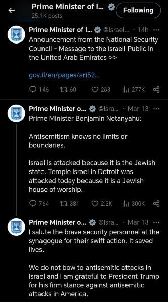 එසේම මාර්තු 10 වන දින නෙතන්යාහු අෂ්ඩෝඩ් වරායට ගිය සංචාරයක් සම්බන්ධයෙන් සටහනක් පල කර තිබුණේ මෙලෙසින්. ඊශ්රායලයේ වරාය සහ ගුවන් අවකාශය සාමාන්ය පරිදි ක්රියාත්මක වන බව එහි සඳහන් වනවා.