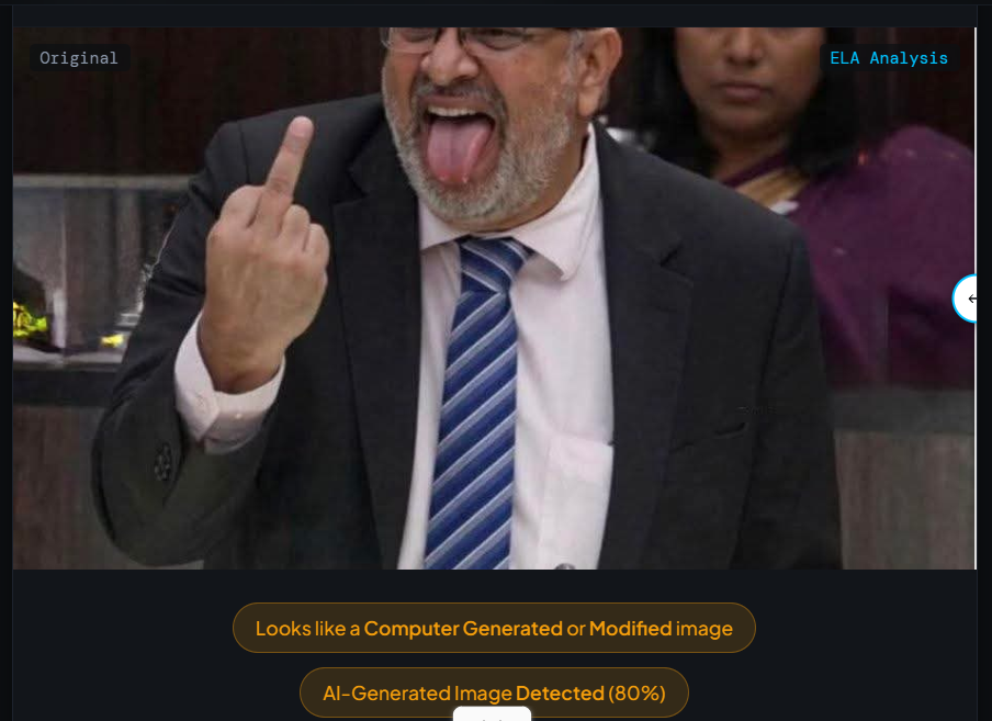 සමාජ මාධ්ය තුළ හුවමාරු වන ඡායාරූපය කෘත්රිම බුද්ධි අන්තර්ගත හඳුනාගත හැකි මෙවලම් කිහිපයක් වෙත යොමු කරන ලද අතර එහිදී අනාවරණය වූයේ අදාළ ඡායාරූපය කෘත්රිම බුද්ධිය ඔස්සේ නිර්මාණය කරන ලද ඡායාරූපයක් බවයි.