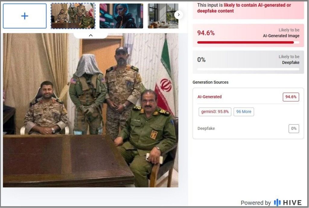 ඒ අනුව මෙම ඡායාරූපය කෘත්රිම බුද්ධිය ඔස්සේ නිර්මාණය කරන ලද ඡායාරූප හඳුනාගැනීමේ මෙවලම් කිහිපයක් වෙත යොමු කොට පරීක්ෂා කිරීමට පියවර ගත් අතර එහිදී හෙළිවූයේ, මෙම ඡායාරූපය කෘත්රිම බුද්ධිය ඔස්සේ නිර්මාණය කරන ලද ඡායාරූපයක් බවයි.