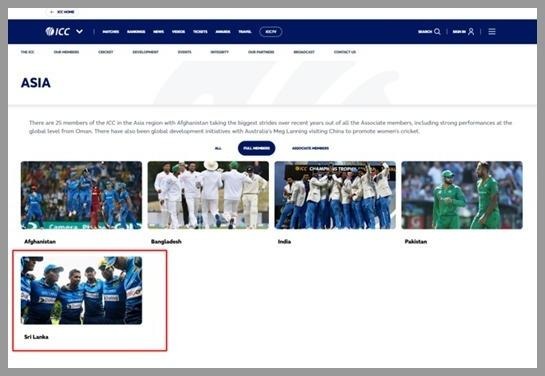 ජාත්යන්තර ක්රිකට් කවුන්සලේ විසින් ඔවුන්ගේ නිල වෙබ් අඩවියේ ශ්රී ලංකාව ICC පූර්ණ සමාජිකයකු ලෙස නම් කර තිබුණේ මෙලෙසින්.