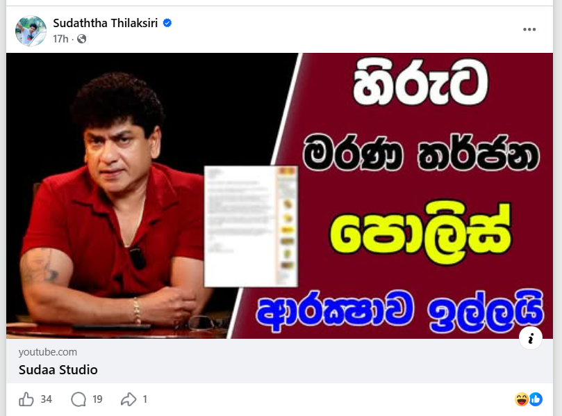 එමෙන් ම “හිරුට මරණ තර්ජන පොලිස් ආරක්ෂාව ඉල්ලයි” යනුවෙන් සඳහන් කරමින් Sudaa Studio, Youtube නාලිකාවේද, වීඩියෝවක් සංසරණය වී තිබුණා.