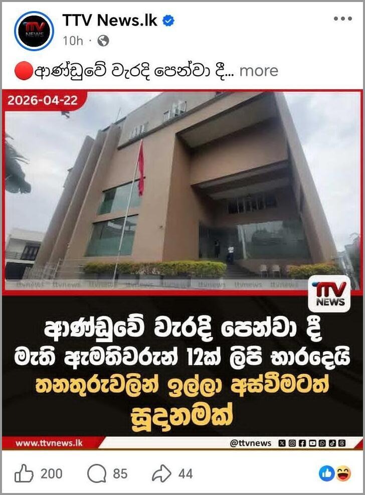 මෙහි සත්ය අසත්යභාවය සොයා බලමින් අප විසින් සිදු කළ කරුණු පරීක්ෂාව පහතින්.