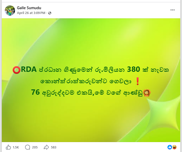 මුදල් අමාත්යංශයේ විදේශ සම්පත් දෙපාර්තමේන්තුවේ පරිගණක පද්ධතිය හරහා ඩොලර් මිලියන 2.5ක මුදලක් වංචා කිරීමක් සිදුව ඇති පසුබිමක මාර්ග සංවර්ධන අධිකාරිය විසින් කොන්ත්රාත්කරුවන්ට ගෙවා නිම කළ මිලියන 380ක් මුදලක් නැවත වැරදීමකින් ගෙවා ඇති බවට දක්වමින් සමාජ මාධ්ය සටහන් සංසරණය වුණා. මෙහි ඇත්ත නැත්ත සොයා බැලීමට අප කටයුතු කරනු ලැබුවා.