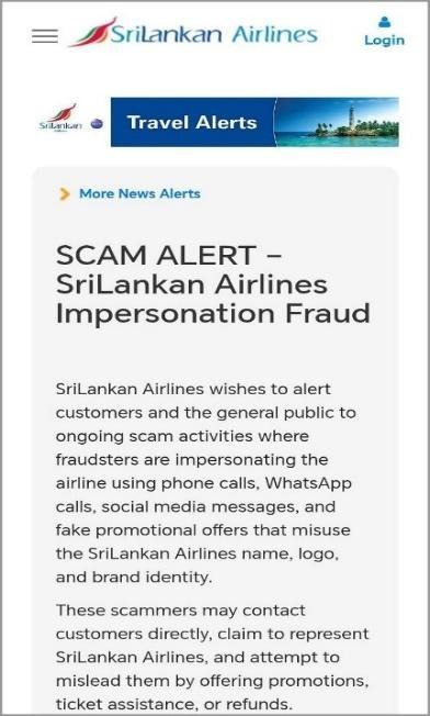 - Users should always access SriLankan Airlines services exclusively through its official website.