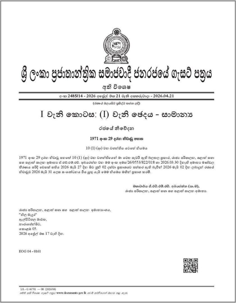 Even so, on 21 April, a notification issued under the signature of the Minister of Public Administration, Provincial Councils and Local Government amended the previously designated public holiday from 2 May 2026 to 31 May 2026. The statement further noted that, in view of the Cabinet decision of 30 March declaring Vesak Week from 27 May to 2 June, the amendment has been effected in accordance with the powers conferred upon the Minister under Section 10(1)(b) of the Holidays Act No. 29 of 1971.