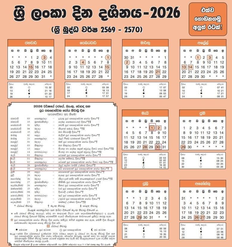 According to the 2026 Sri Lankan calendar, two full moon days occur in May. Vesak Poya falls on May 1, coinciding with World Workers’ Day; consequently, May 2 (Saturday) was declared a government, bank, and commercial holiday. The calendar further designates the May 30 Poya as Adiposaon Full Moon Poya Day.