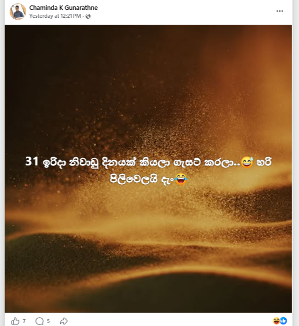 Additionally, during the Cabinet press conference on April 22, the Cabinet Spokesperson responded to a media inquiry by noting that whenever the day after Vesak Poya falls on a Sunday, it has traditionally been declared a public holiday.