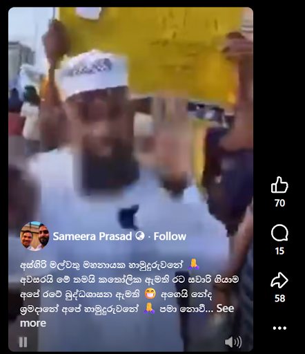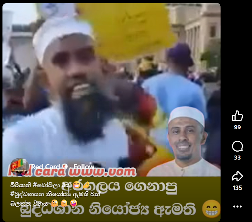 Another video was circulated stating that the National People’s Power government is trying to hurt the hearts of the Sinhalese and Buddhists by giving a ministry related to religious affairs to a person who was active in the ‘Aragalaya’ three years ago, to oust President Gotabhaya, and who spoke out about President Gotabhaya as “Gota is a fool, Gota’s family are fools” (‘ගෝඨා ගොබ්බයා ගෝඨගේ ෆැමිලි ගොබ්බයා’).