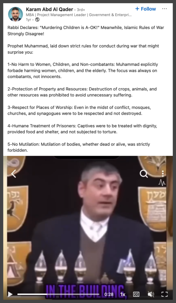 A short video clip circulating widely online shows Rabbi Yosef Mizrachi discussing war, terrorism, and the killing of civilians. Viral captions often frame the clip with statements such as: “Rabbi Yosef Mizrachi declares: ‘Murdering children is A-OK.’”