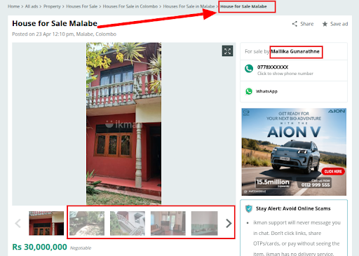 We also reached out to Raynor Silva’s representatives. They confirmed that his house is not for sale and that no such advertisement has been published on ikman.lk or any other platform.