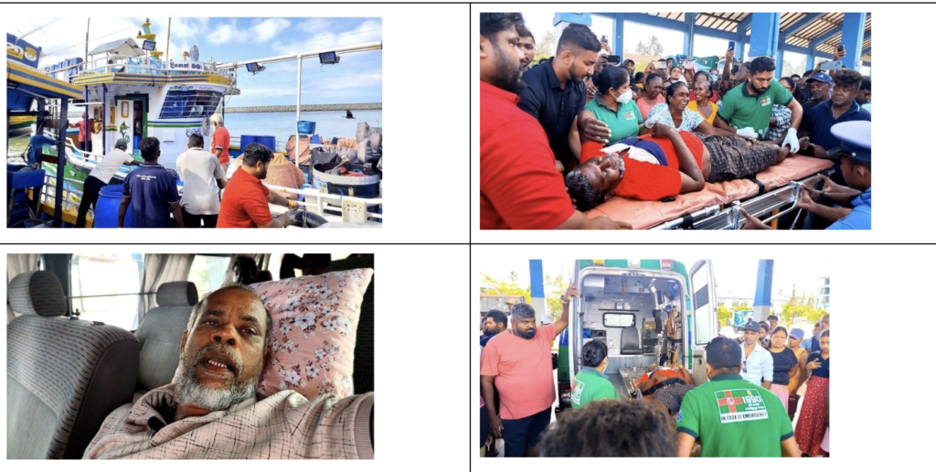 After the intervention of the Sri Lanka Navy, the injured fishermen were brought ashore on the morning of February 4 and admitted to Colombo National Hospital. The Fisheries Minister Ramalingam Chandrasekaran’s media team said that he visited Colombo National Hospital that day to check on the condition of the fishermen.