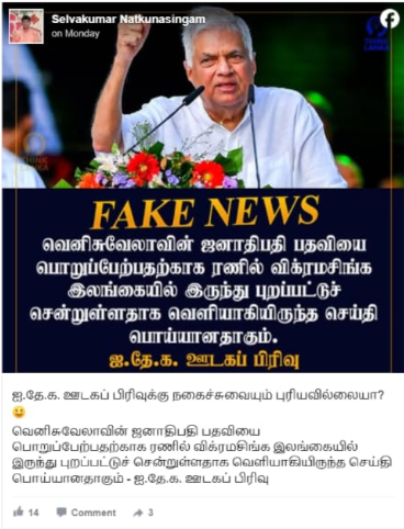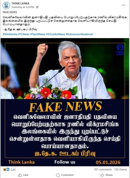 On January 5, 2026, social media posts claimed that the UNP media unit released a statement clarifying that the viral posts of Ranil Wickremesinghe leaving for Venezuela to assume their presidency were fake.