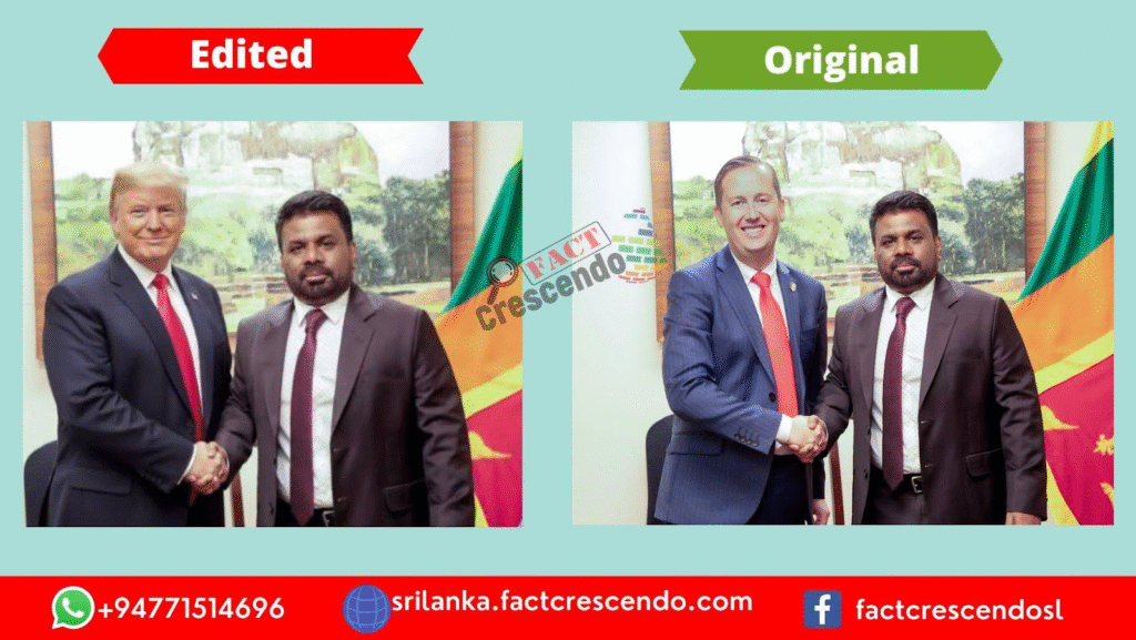 Accordingly, it can be seen that the photo of Sergio Gor and President Anura taken on the above occasion has been edited to appear as if it were taken with US President Trump and Sri Lankan President Anura.