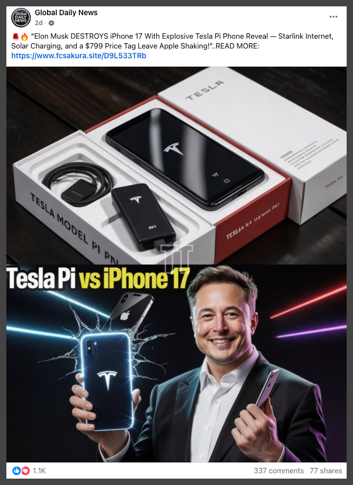 The viral statement that Elon Musk has revealed a “Tesla Pi Phone” with Starlink internet, solar charging, and a $799 price tag to rival the iPhone 17 is false. It extends the same unfounded rumors previously debunked, with no credible evidence from Tesla, SpaceX, or reliable technology media.