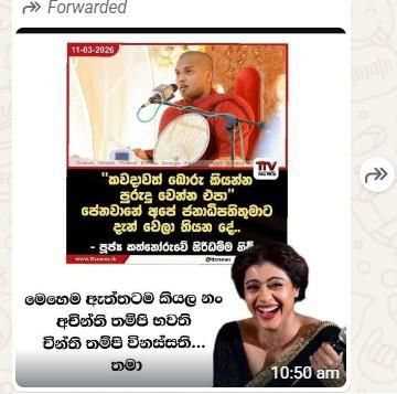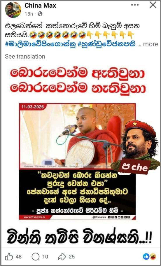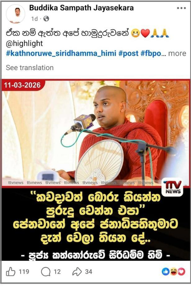 When we inquired about the posts circulating on social media, the coordinator of Venerable Kathnoruwe Siridhamma Thero stated that no such statement had been made and confirmed that the posts were completely fabricated.