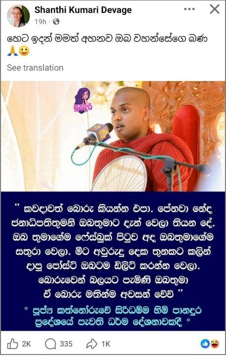 False and Fabricated Posts Targeting Kathnoruwa Siridhamma Thero & President Anura!