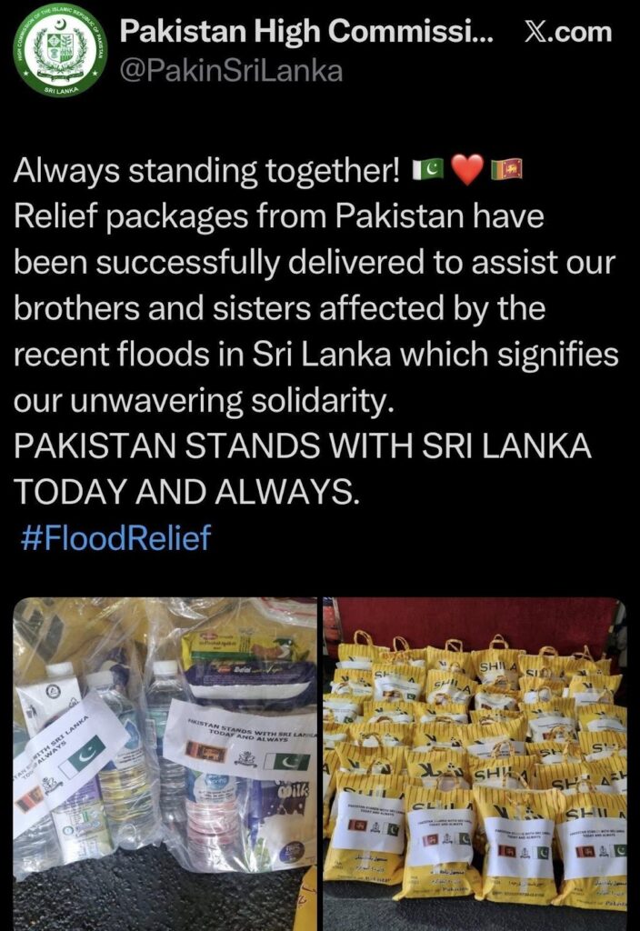 The official Facebook page of the Pakistan High Commission in Sri Lanka also posted a post with photos in this regard, stating that the relief package included rice, dry rations, and essential supplies.