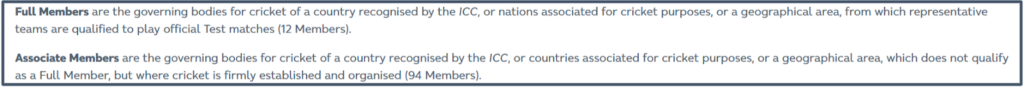 According to the ICC, by 2026, there will be 12 Full Member countries and 96 Associate Members countries where cricket is firmly established and organized but which do not have full membership. In total, 108 countries are currently affiliated with the ICC and indicated as follows.